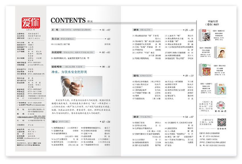 《愛你》雜志主要倡導者、兒童文學作家呼吁更多人參與活動中,關心孩子們的成長,與中國郵政攜手愛心人士,將向偏僻鄉(xiāng)村傳播健康理念和醫(yī)學知識。創(chuàng)刊于2007年,期望通過自身在傳播領域的資源優(yōu)勢,給我們帶來高品質生活,紙張開本:16開,國內刊號:CN:43-1477/GO。