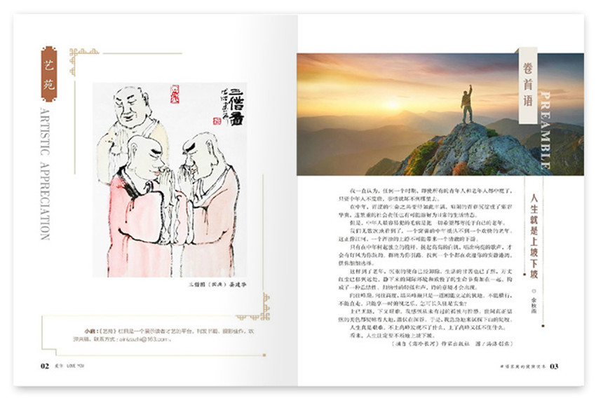 雜志堅持捕捉情感細節(jié),傳播幸福哲學,通過挖掘平常生活中不為關注的情感細節(jié),引導讀者感悟生活、感受美好。文字精煉,快樂耐讀。被譽為提升幸福指數的精神寶典,饋贈師長和親友的高尚禮物。