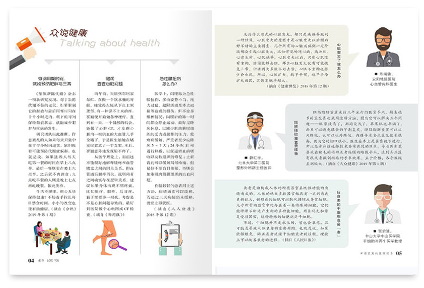 《愛你 健康讀本》的主要欄目有:健康觀察、健聞、健心、健體、健情、健談、健腦等;