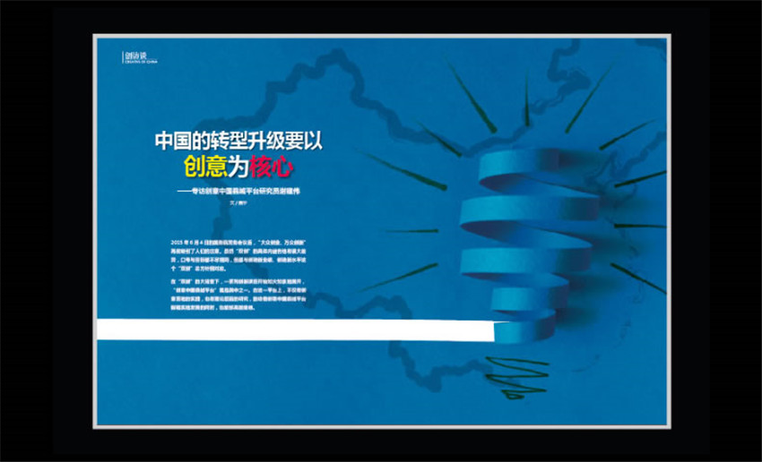《創(chuàng)意中國》雜志致力于把世界珍奇的創(chuàng)意人才的創(chuàng)造力、創(chuàng)造技能和創(chuàng)意知識產(chǎn)權(quán)、具有遠(yuǎn)見卓識的金融資本與中國縣域無所不在的自然、生態(tài)、經(jīng)濟(jì)、社會、文化資源進(jìn)行深度融合與無縫對接,在廣袤的中國大地上碰撞出震撼心靈、光耀神州的創(chuàng)意火花,從而創(chuàng)造、延伸出無限的產(chǎn)業(yè)、無限的財(cái)富,為創(chuàng)意中國點(diǎn)贊。