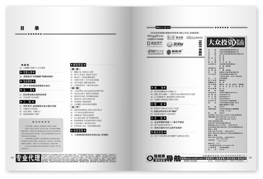 《大眾投資指南》創(chuàng)辦于1993年,月刊,單期88頁(yè),《大眾投資指南》雜志是全國(guó)及時(shí)家?guī)椭椭笇?dǎo)中小投資創(chuàng)業(yè)者投資賺錢(qián)的普及性財(cái)經(jīng)雜志,是中小投資創(chuàng)業(yè)者早日走上富裕階層的良師益友。