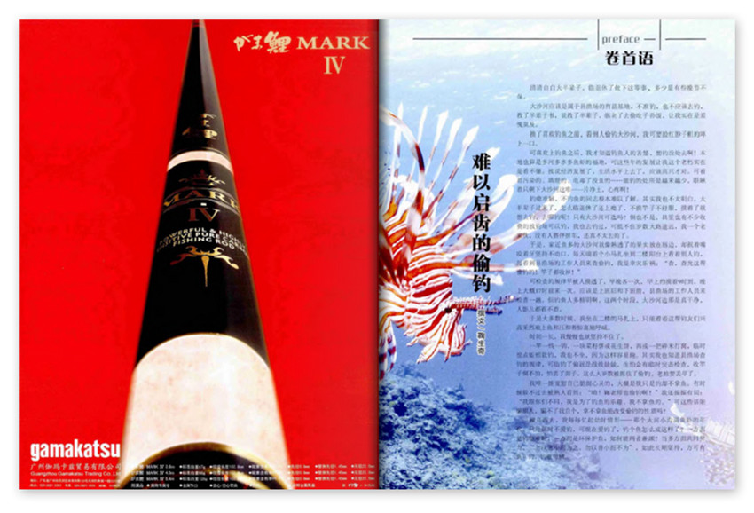 文化為紐帶,并重釣具使用,滿足釣友們對(duì)釣魚和釣具知識(shí)的需求,卷首語(yǔ)為釣魚作史,為釣魚張目,為釣魚的發(fā)揚(yáng)傳承而奮斗,釣技交流針對(duì)祖國(guó)傳統(tǒng)釣技進(jìn)行探討。