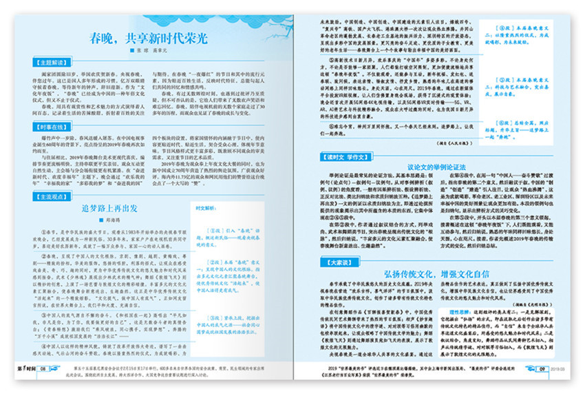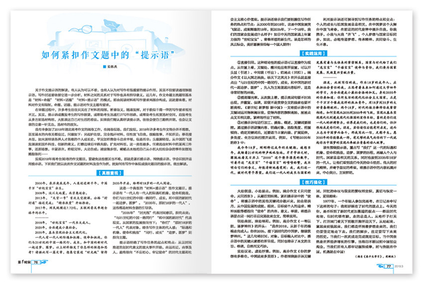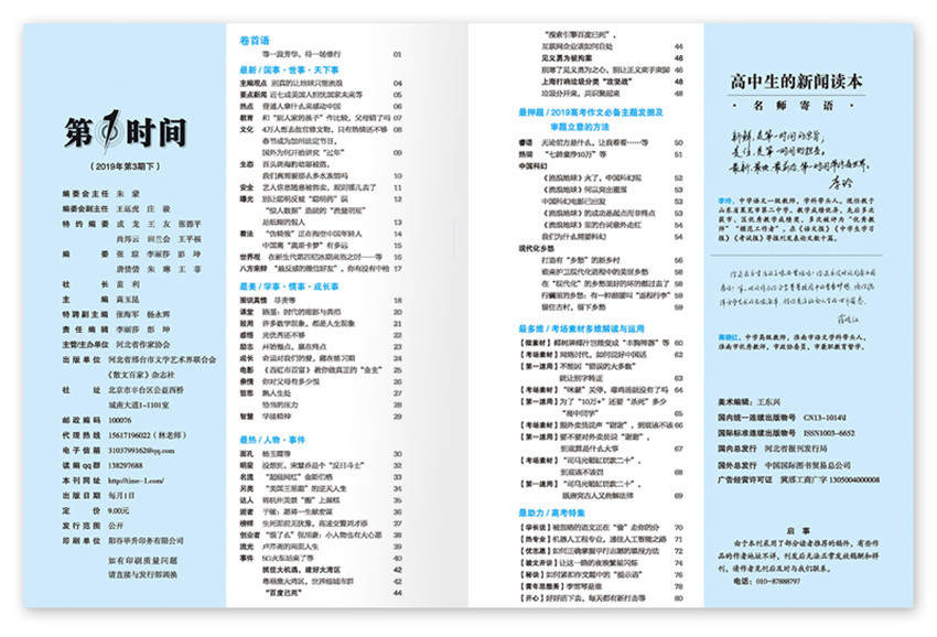 按照實用、新穎、個性、快速的宗旨,向高中學(xué)生傳遞新的作文素材信息,為廣大高中學(xué)生豐富知識,拓展視野搭建平臺?!都皶r時間》專為高中生量身打造的新聞類讀本!及時時間?天下事·萬象記:天下萬象在此一覽無余;情事·同學(xué):你的心事于此可得釋放;及時時間?成長事?致青春:微青春的那一抹青澀點贊,幫助高中生開闊視野,從中學(xué)會觀照自我,得到教益,并且能夠錘煉恰當?shù)奶幨缿B(tài)度,打造應(yīng)有的宏觀格局。