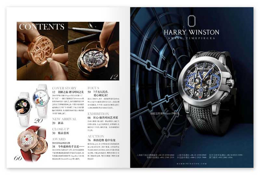 他們需要精表的常識,希望有一本專業(yè),性,文字又深入潛出的精表雜志來滿足他們對于精表專業(yè)知識的缺乏。影響力每年舉辦國際精表大賞、出版國際精表年鑒深受業(yè)界支持與肯定穿梭在高級腕表與時尚生活領(lǐng)域之間以高端金字塔消費人群為主表述人生,表現(xiàn)精彩實為愛表人士的收藏品鑒指南。