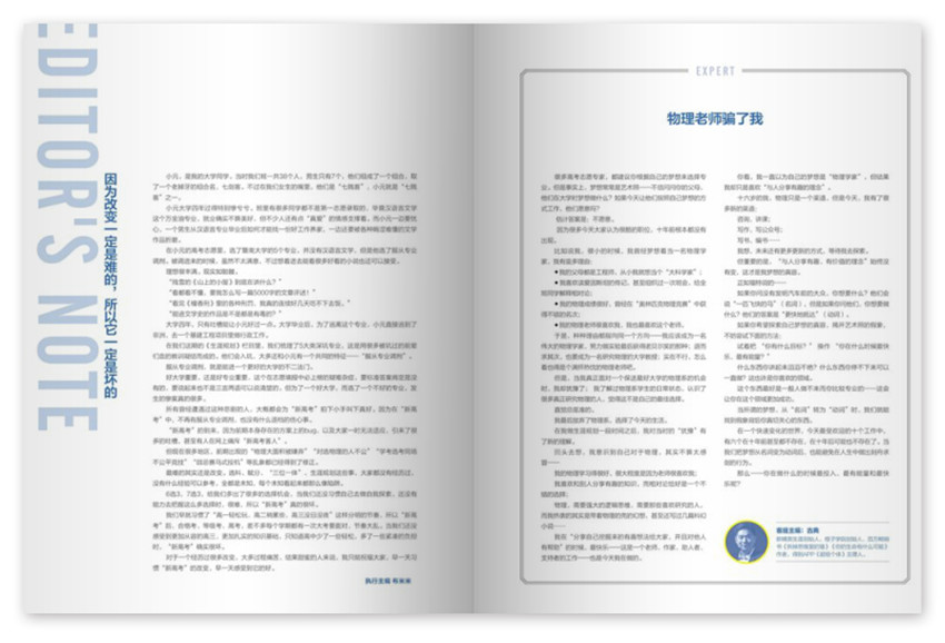 雜志的閱讀人群面多而廣,鮮明的辦刊宗旨和長期穩(wěn)定的高質(zhì)量文章,具有深度影響力的學(xué)習(xí)輔導(dǎo)雜志,雜志的獨特風(fēng)格贏得了廣大讀者喜愛,觀念前衛(wèi)脫俗,文風(fēng)生動洗煉。獨特的敘述風(fēng)格,文字力求生動簡潔而饒有興趣,強調(diào)與讀者的交流,具有濃厚的文人氣息和知識分子情調(diào)。
