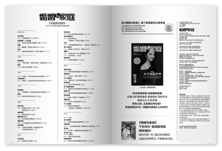 辦刊宗旨:密切關(guān)注并報(bào)道國內(nèi)外婚姻家庭領(lǐng)域的新動(dòng)向、新思潮、新問題,大力倡導(dǎo)科學(xué)、健康、文明的生活方式,解析和探討婚姻家庭領(lǐng)域的問題,傳播高尚的情操和科學(xué)的家教理念,是情侶的愛情解藥,是夫妻的心靈雞湯,是父母的貼身指南。