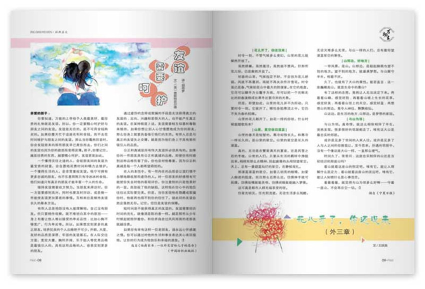 《經(jīng)典美文》創(chuàng)辦于2005年,月刊,單期96頁,《文苑·經(jīng)典美文》雜志秉承“文字感動生活”的編輯理念,發(fā)揚“誠懇、自然、質樸、親切”的編輯風格,薈萃中外美文經(jīng)典,輯錄現(xiàn)當代時文,與讀者共鳴經(jīng)典、分享精品、同述感動。