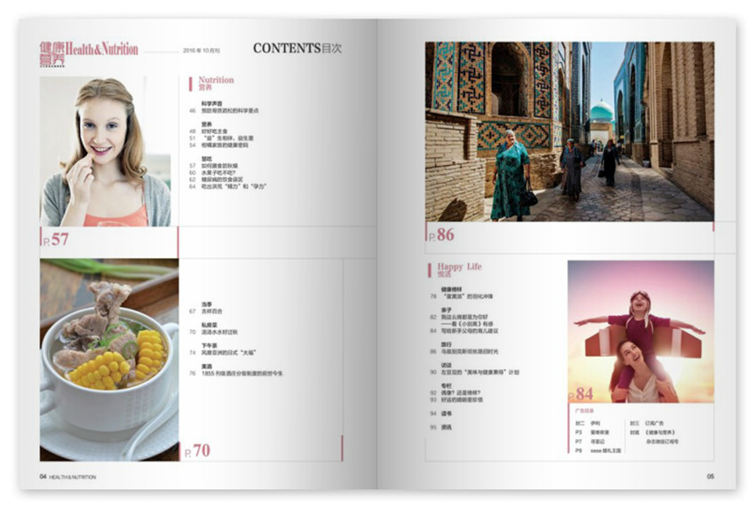 把握潮流理念,分享健康生活方式,提供多方位營養(yǎng)資訊,關(guān)愛精英生活,推動健康升級,著力打造健康、自由的生活理念,以最快的速度,以最專業(yè)的手法,較大化地為客戶和讀者創(chuàng)造價值,主要欄目:我們推薦,科學(xué)聲音,健康榜樣,大廚上菜,以提升健康素養(yǎng)為己任,并與衛(wèi)生系統(tǒng)機(jī)構(gòu)中國疾病預(yù)防控制中心聯(lián)合開設(shè)專題欄目,面向城市精英普及營養(yǎng)科學(xué)的雜志。