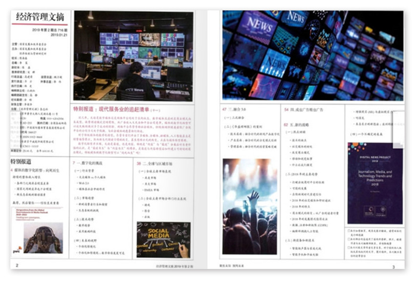 《經(jīng)濟(jì)管理文摘》主要欄目:管理行知、海外工商、互聯(lián)網(wǎng)、產(chǎn)業(yè)轉(zhuǎn)移、世界論壇、他山之石、民族評(píng)論、專家視點(diǎn)、政策黃頁(yè)。