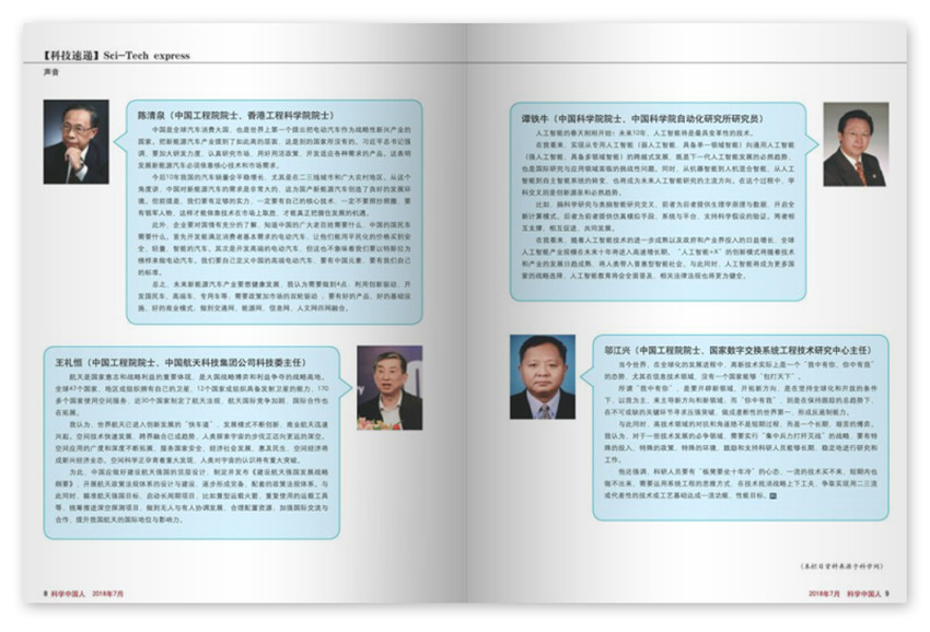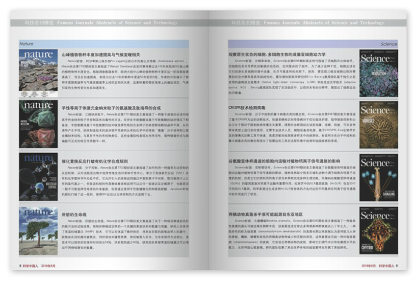 《科學(xué)中國(guó)人》主要欄目:中國(guó)人口老齡化問題、國(guó)際權(quán)威刊物關(guān)注、歐盟加強(qiáng)光予技術(shù)創(chuàng)新等。