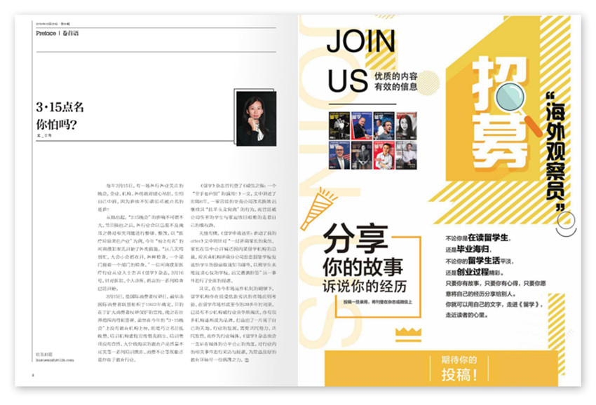 《留學(xué)》主要欄目:資訊、封面故事、視線、政策/產(chǎn)業(yè)、大留學(xué)、專欄等等。