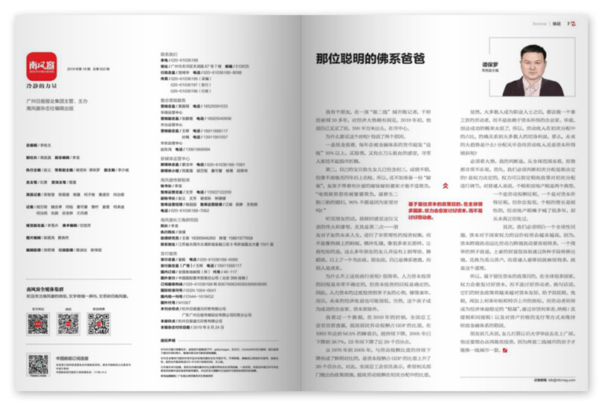不會晦澀難懂,但又不淺顯直白,這是《南風窗》內(nèi)容的風格。將晦澀的知識用常人讀懂的語言講述,讓讀者較快明了,再引導讀者學會思考:廣州電營商改革的背后暗藏著什么、巴格達迪的死又意味著什么.....用短時間了解,用長時間思考。