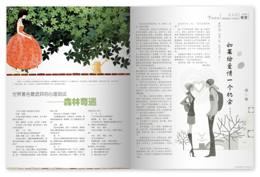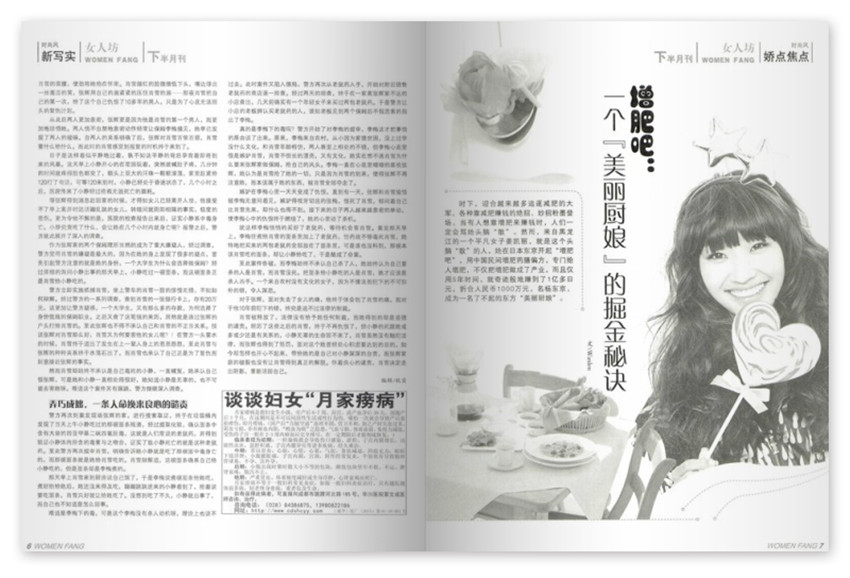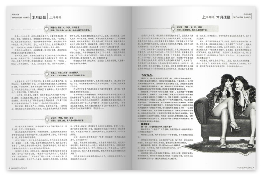 《女人坊》雜志多年來貴在不斷適應(yīng)市場,并多次調(diào)整版塊、欄目、風(fēng)格、版式、印刷,一步一個腳印,一年一個臺階,從只在國內(nèi)發(fā)行到走向國際書刊市場。