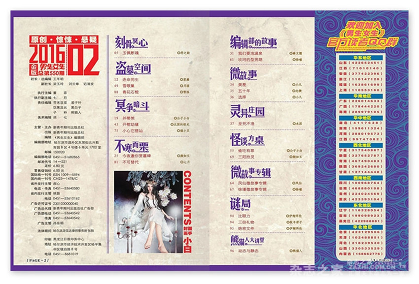 以“恐怖小說(shuō)+奇幻玄異”開(kāi)辟校園閱讀新鮮領(lǐng)域,兼顧卡通漫畫(huà)、玩樂(lè)等校園休閑熱力內(nèi)容。金版的主要內(nèi)容是以恐怖、奇幻為主,以中學(xué)生及其同齡人為目標(biāo)讀者。16開(kāi)本,80頁(yè),全彩印刷。在中學(xué)生期刊市場(chǎng)中,得到讀者的廣泛認(rèn)可,享有較高聲譽(yù)。