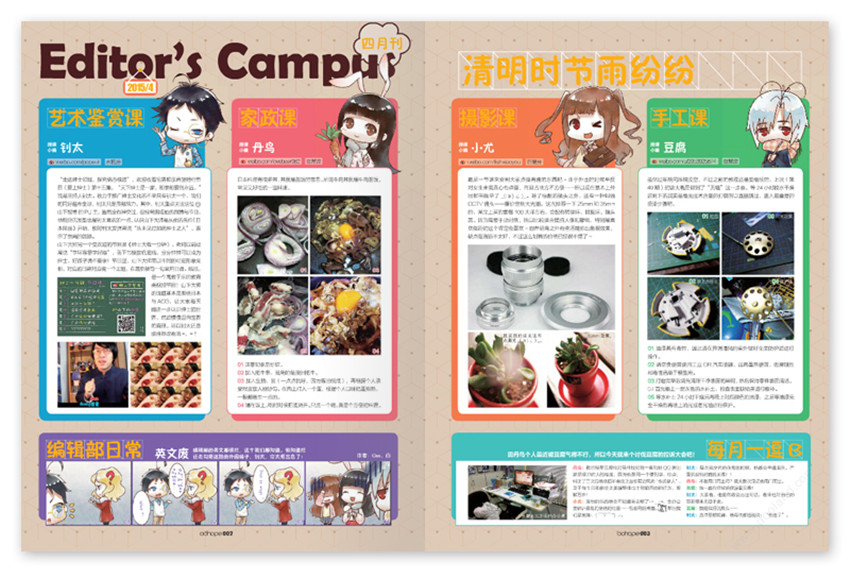 首本針對潮流動漫人和動漫潮流追隨者,并以推廣及發(fā)展民族動漫文化,打造國內(nèi)動漫平臺為目的的動漫潮流讀物,主要欄目:動.播客、包羅漫有、天朝制作、HOTREAD、COS專區(qū)等,精彩的參與與體驗(Experience),以年輕的視覺展現(xiàn)近期,潮的動漫咨詢。
