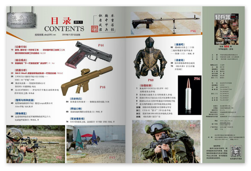 《輕兵器》主要欄目:精銳部隊(duì)、前沿視點(diǎn)、武器看臺、名槍名彈、戰(zhàn)役戰(zhàn)術(shù)等。