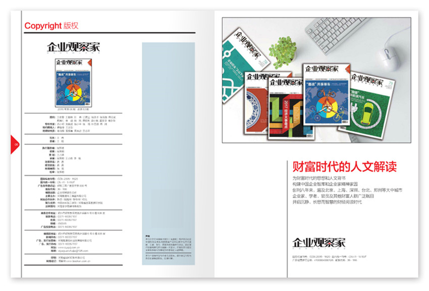 《企業(yè)觀察家》雜志聚焦經(jīng)濟(jì)動態(tài),揭示深層財(cái)經(jīng)問題,交流企業(yè)界經(jīng)營管理之道,反映企業(yè)界豐富人生,書寫企業(yè)家智慧,搭建中國企業(yè)發(fā)展智庫。,弘揚(yáng)市場人文關(guān)懷,在激勵人們創(chuàng)造、追求財(cái)富的同時(shí),倡導(dǎo)有價(jià)值的商業(yè)文明和商業(yè)精神,建設(shè)中國企業(yè)的商業(yè)規(guī)則和商業(yè)價(jià)值體系。
