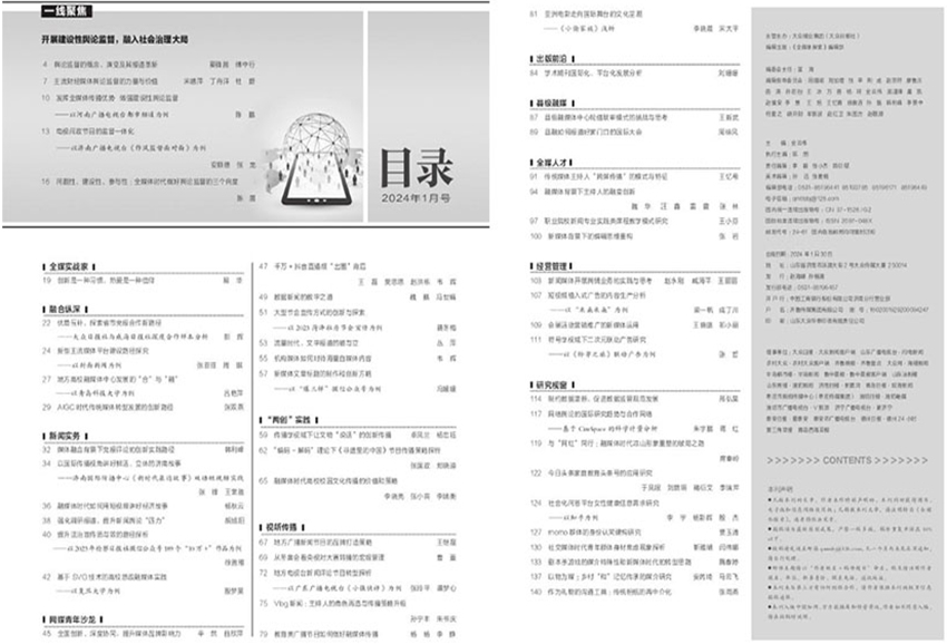 刊物秉持“把論文寫(xiě)在全媒體實(shí)踐探索的沃土上”的辦刊宗旨,以“實(shí)戰(zhàn)為先,智啟未來(lái)”為核心定位,聚焦媒體融合前沿動(dòng)態(tài)與行業(yè)痛點(diǎn)問(wèn)題。其內(nèi)容體系兼具深度與廣度,既深入探討內(nèi)容創(chuàng)作、人才培養(yǎng)、經(jīng)營(yíng)管理等業(yè)界核心議題,又密切關(guān)注新一輪科技革命背景下智能應(yīng)用、輿情治理等新興課題,同時(shí)兼顧國(guó)際傳播視野下的媒介生態(tài)演進(jìn)研究,形成了理論深度與實(shí)踐價(jià)值并重的內(nèi)容特色,為媒體全面深度融合發(fā)展提供切實(shí)可行的思路與借鑒。