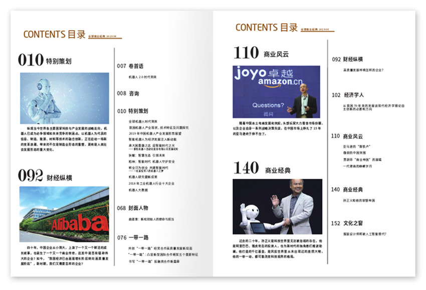 《全球商業(yè)經(jīng)典》雜志分為天下、封面、世間、經(jīng)典、人文、趨勢(shì)、生活等七大版塊,天下匯聚全球資訊與精英觀點(diǎn),封面提供戰(zhàn)略與趨勢(shì)的深度報(bào)道,世間通過審視個(gè)人命運(yùn)折射大歷史,經(jīng)典則是對(duì)商業(yè)模式與典型案例的全景剖析,人文追尋商業(yè)原點(diǎn)的價(jià)值基因,趨勢(shì)描畫技術(shù)與商業(yè)的未來,生活倡導(dǎo)美及與優(yōu)雅有關(guān)的一切。