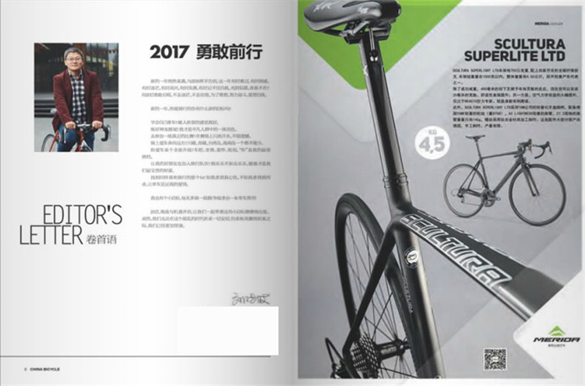 中國自行車協(xié)會(huì)和中國輕工業(yè)出版社共同策劃出版的及時(shí)本面向騎車愛好者的雜志,定位于戶外達(dá)人、白領(lǐng)、商務(wù)成功人士,雜志致力于通過展示品質(zhì)、特色自行車產(chǎn)品和相關(guān)裝備、附件,以及傳遞自行車旅游、自行車環(huán)保、自行車健身為主的自行車時(shí)尚生活方式。