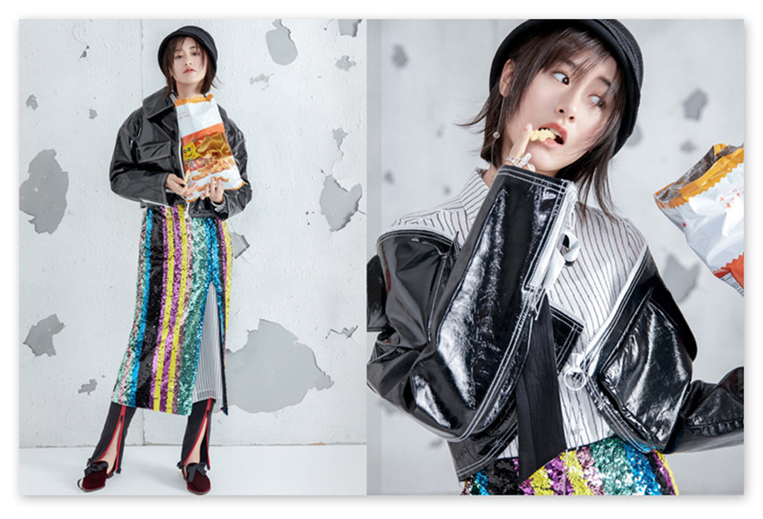 主題拍攝現(xiàn)場(chǎng),金晨毫無(wú)偶像包袱,反復(fù)與編輯和造型師商議如何造型、如何化妝,為拍攝做足準(zhǔn)備。她笑稱:“我非常喜歡目前的狀態(tài),累并快樂(lè)著,過(guò)好現(xiàn)在就是一件很美的事?!痹诜饷媾臄z現(xiàn)場(chǎng),纖瘦的童瑤表現(xiàn)出充沛的精力與鏡頭駕馭能力。