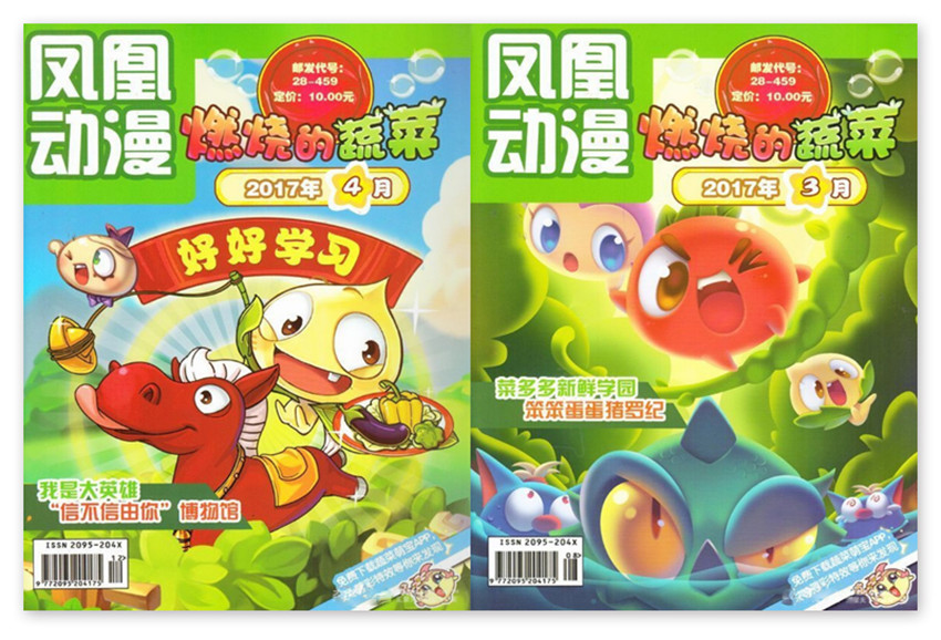 《燃燒的蔬菜》創(chuàng)辦于2016年1,月刊,單期64頁(yè),《燃燒的蔬菜》雜志內(nèi)容涵蓋“燃燒的蔬菜”動(dòng)畫(huà)片截屏漫畫(huà)連載,適合小學(xué)階段孩子閱讀,以圖為主,文圖結(jié)合,設(shè)計(jì)精妙,精彩紛呈。