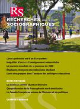 《Recherches Sociographiques》雜志(ISSN: 0034-1282,是一本專注于SOCIOLOGY的國際SCI期刊,