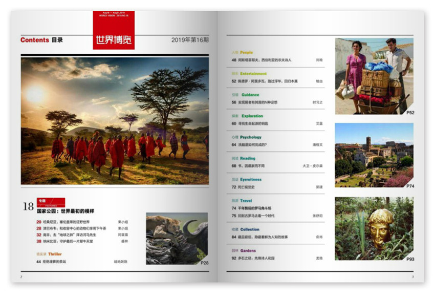 《世界博覽》主要欄目:思想文化18%、封面報(bào)道20%、歷史探幽15%、資訊交流17%等。