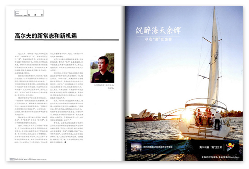 目前少數(shù)在全國范圍發(fā)行、具有高度專業(yè)水準(zhǔn)的高爾夫雜志,與英國"GOLFPUNK"雜志版權(quán)合作,高爾夫運(yùn)動(dòng)也在逐漸擺脫貴族”的誤解,開始"飛入尋常百姓家”,以各種形式進(jìn)入公立學(xué)校的課程中,被廣大青少年學(xué)生所了解,去妖魔化,被社會廣泛了解,這些也都是高爾夫的新常態(tài)和新機(jī)遇。