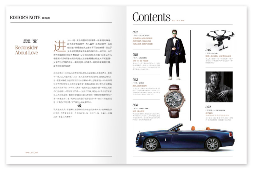 在這個(gè)東西方文化交融下,《紳士生活》秉承著品牌一貫的主張——穩(wěn)重大氣的外表,一顆躍動(dòng)的心,交融東西方智慧,分享知識(shí)及生活樂(lè)趣,共同邁入所追尋的貴氣,品位,品質(zhì),個(gè)性的紳士舒適生活,為中國(guó)精英人士提供有價(jià)值的貴氣、品位、品質(zhì)生活范本,是富人及精英階層的生活意見領(lǐng)袖。