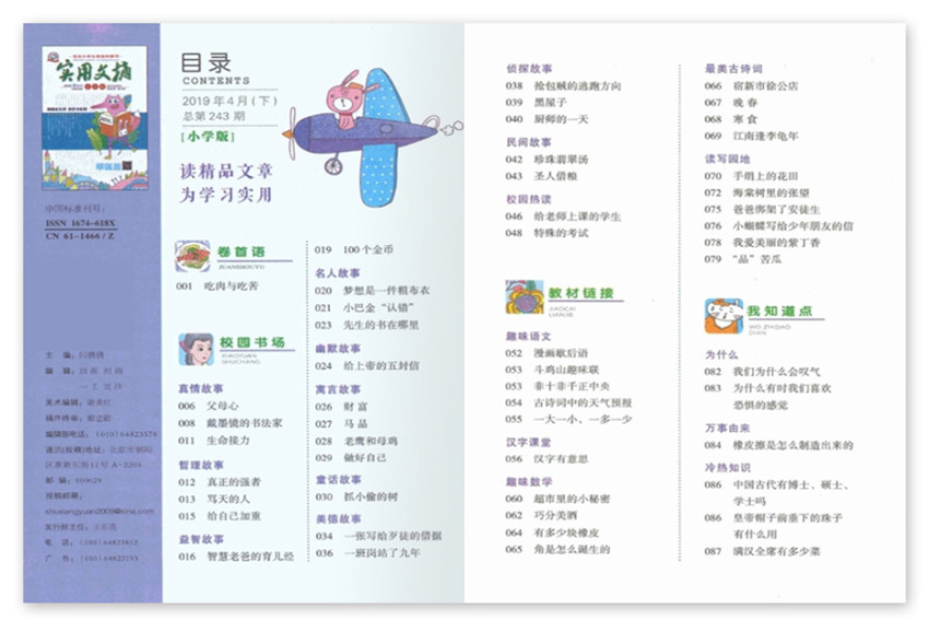 《實(shí)用文摘》主要欄目:即卷首語、校園書場、教材鏈接、我知道點(diǎn)、我愛科學(xué)等。