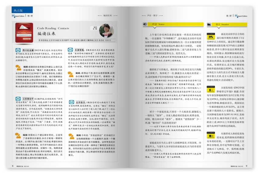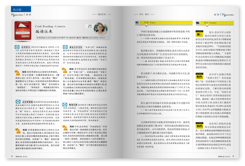 《糖尿病之友》主要欄目:熱點(diǎn)版、生活版、互動(dòng)版、綜合版等。