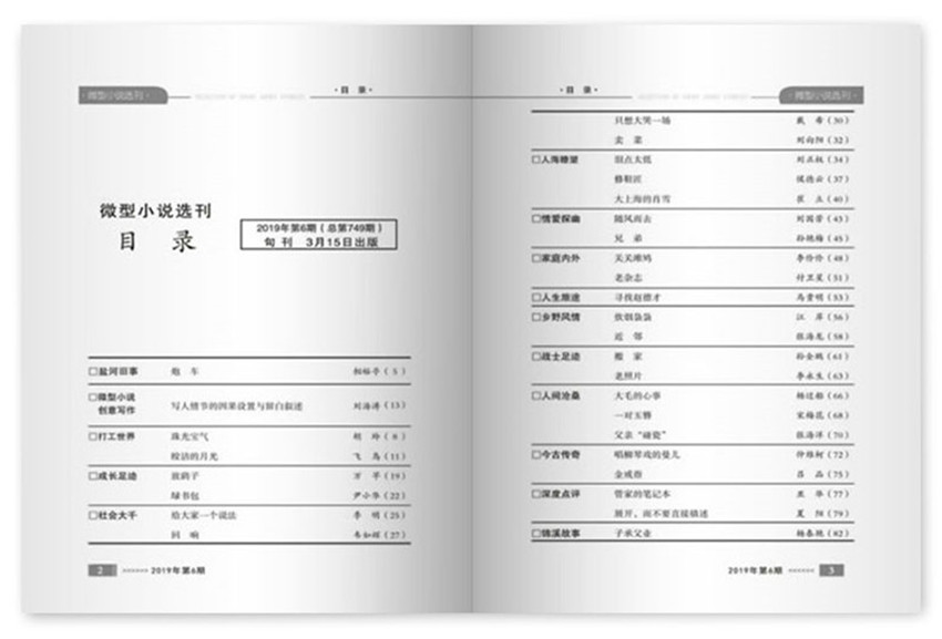 《微型小說(shuō)選刊》,創(chuàng)刊于1990年,期望通過(guò)自身在傳播領(lǐng)域的資源優(yōu)勢(shì),給我們帶來(lái)高品質(zhì)生活,紙張開(kāi)本:32開(kāi),國(guó)內(nèi)刊號(hào):CN:36-1089/I。創(chuàng)刊以來(lái),堅(jiān)持"期期精彩、篇篇可讀"的理念,歷經(jīng)多年的發(fā)展和積淀,在廣大讀者中和業(yè)界享有良好的聲譽(yù)。