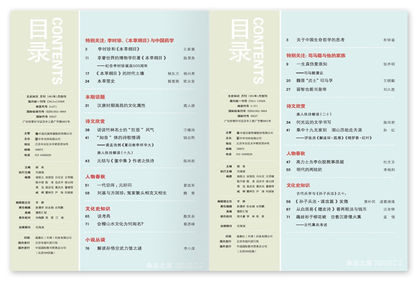 《文史知識》主要欄目:筆談、文史百題、詩文欣賞、文物與考古、古代科技漫話、人物春秋。