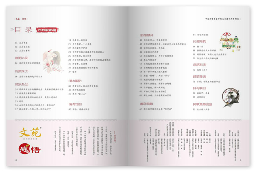 《文苑》雜志秉承“文字感動(dòng)生活”的編輯理念,用精美的文字與讀者同行,唯美、精彩、清新、智慧,發(fā)人深省,感人至深,充滿生活情趣,宣揚(yáng)理性哲思,追求簡單中的精致與典雅,解讀平凡中的意趣與智慧。