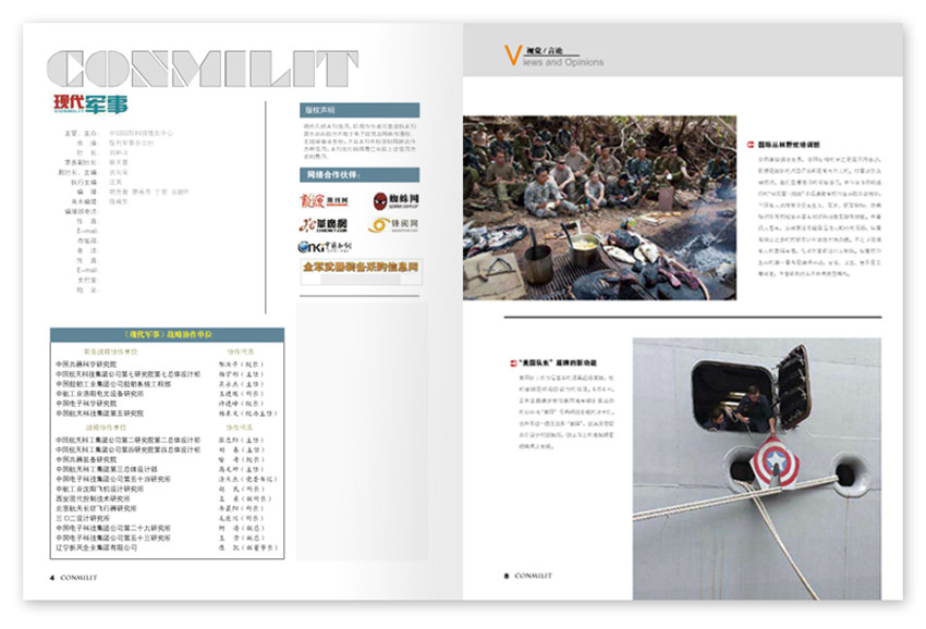 《現(xiàn)代軍事》主要欄目:神州風(fēng)采、特稿、臺海觀察、專題、展會報(bào)道、軍事裝備等。