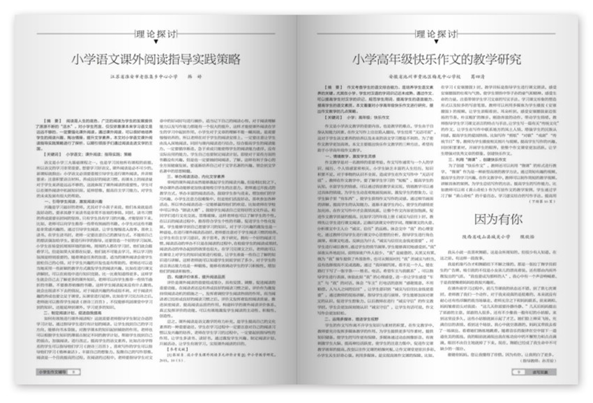 《小學生作文輔導》,創(chuàng)刊于1985年,期望通過自身在傳播領域的資源優(yōu)勢,給我們帶來高品質(zhì)生活,紙張開本:16開,國內(nèi)刊號:CN:22-1048/G4。小學語文課外閱讀指導實踐策略,閱讀是人生的底色,廣泛的閱讀為學生的發(fā)展提供了源源不斷的“活水”,對小學生而言,僅僅依靠課本來學習語文是遠遠不夠的,一定要強化課外閱讀。