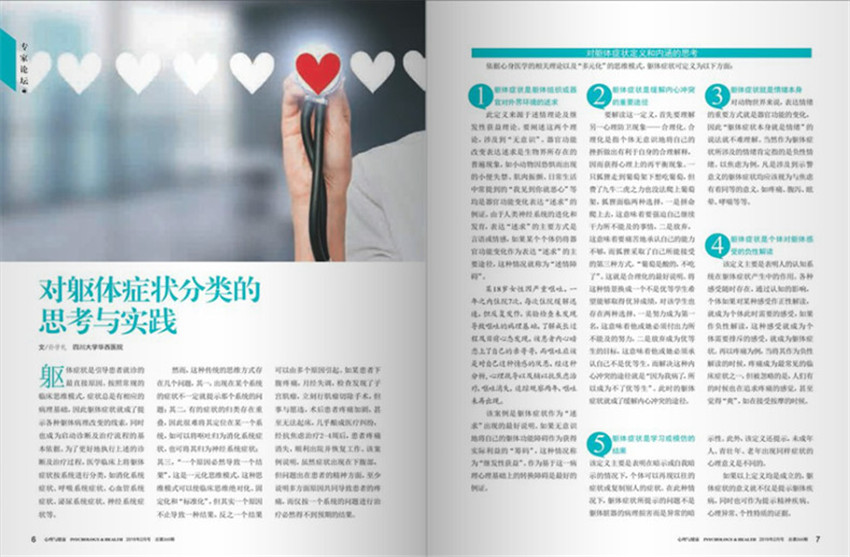 《心理與健康》創(chuàng)辦于1994年,月刊,單期80頁,《心理與健康》雜志是中國科協(xié)主管,中國心理衛(wèi)生協(xié)會主辦的國家級心理科普雜志。創(chuàng)刊23年來,一直以提高我國人口心理健康素質(zhì)、增進(jìn)大眾心身健康為宗旨,并以其較強(qiáng)的知識性、指導(dǎo)性和實(shí)用性贏得了眾多讀者的喜愛。