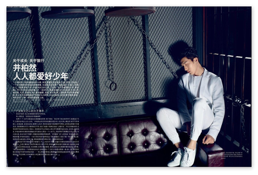 井柏然人人都愛好少年,一個喜歡吃小雞燉蘑菇的東北萌,其實更喜歡宅在家里發(fā)呆、放空、打電動;一個時尚圈頻頻亮相的質感偶像,也會畫風突變做個鬼臉、編個小曲兒,笑倒眾人;《相愛穿梭千年》中溫潤如玉的公明、《失孤》中干凈俊朗的少年,參加真人秀又變身地主家的傻兒子,《捉妖記》里直接搞大肚子生起孩子。有人夸他低調、樂觀、性格好,有人愛他幽默、自然、有點萌,有人因他秀氣的字體被圈粉,有人單憑他高顏值好氣質就為之傾倒,采訪時他貼心的全程手捧錄音筆,單憑這件“小事”或許你就能愛上他。