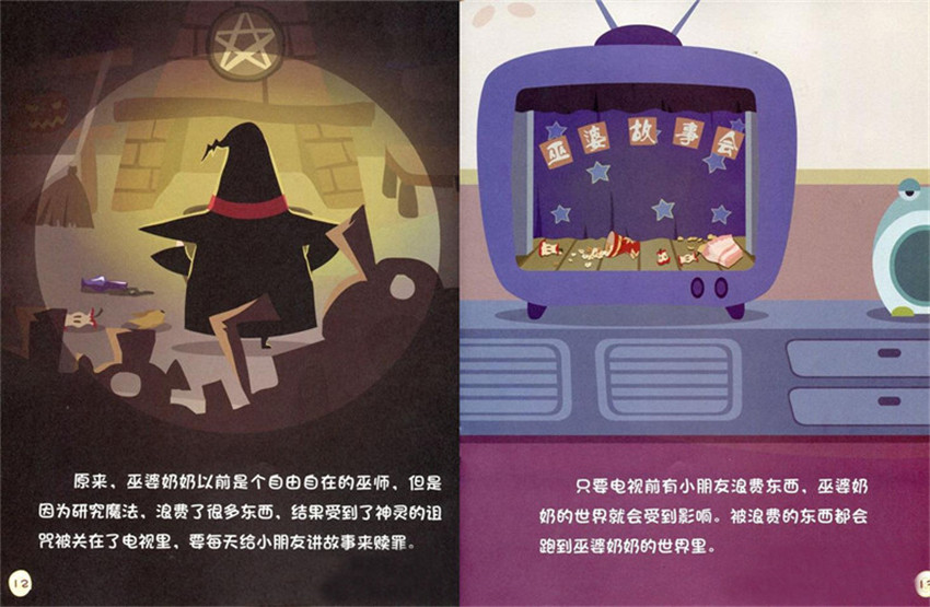 原來(lái)、巫婆奶奶以前是個(gè)目由自在的巫怖,但是因?yàn)檠芯磕Х?,浪費(fèi)了很多末西、結(jié)果受到了神靈的沮咒被關(guān)在了電視里、要每天給小朋友講故事來(lái)贖罪。只要電視前有小朋友浪費(fèi)東西,巫婆奶奶的世界就會(huì)受到影響。被浪費(fèi)的東西都會(huì)跑到巫婆奶奶的世界里。