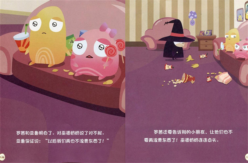 羅茜和亞魯明白了。對(duì)巫婆奶奶說(shuō)了對(duì)不起。亞魯保障說(shuō):“以后 我們?cè)僖膊焕速M(fèi)東西了!”羅茜還要告泝別的小朋友、讓他們也不要浪費(fèi)東西了!巫婆奶奶連連點(diǎn)頭。