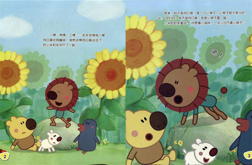 原來(lái),他不是向日葵,是一只小獅子!小獅子跟大家問(wèn)好,說(shuō):“你們好我不是向日葵,我是小獅子雷。喵!”小米哈哈笑著說(shuō):“你更像小貓咪,一一點(diǎn)兒也不像小獅子!一棵、兩棵、三棵.志平覺得有一棵向日葵在咧嘴笑!突然這棵向日葵說(shuō)話了,把小米和志平嚇了一-跳!