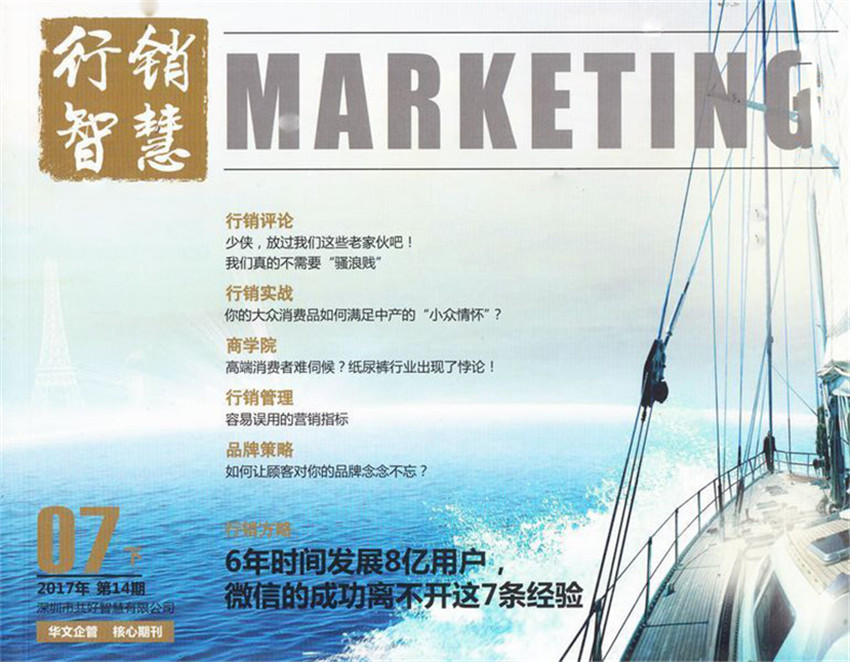 《行銷智慧》雜志以提升企業(yè)的營銷水平,解決企業(yè)營銷的策略、企劃及實操問題,幫助中國企業(yè)做強做大為宗旨。