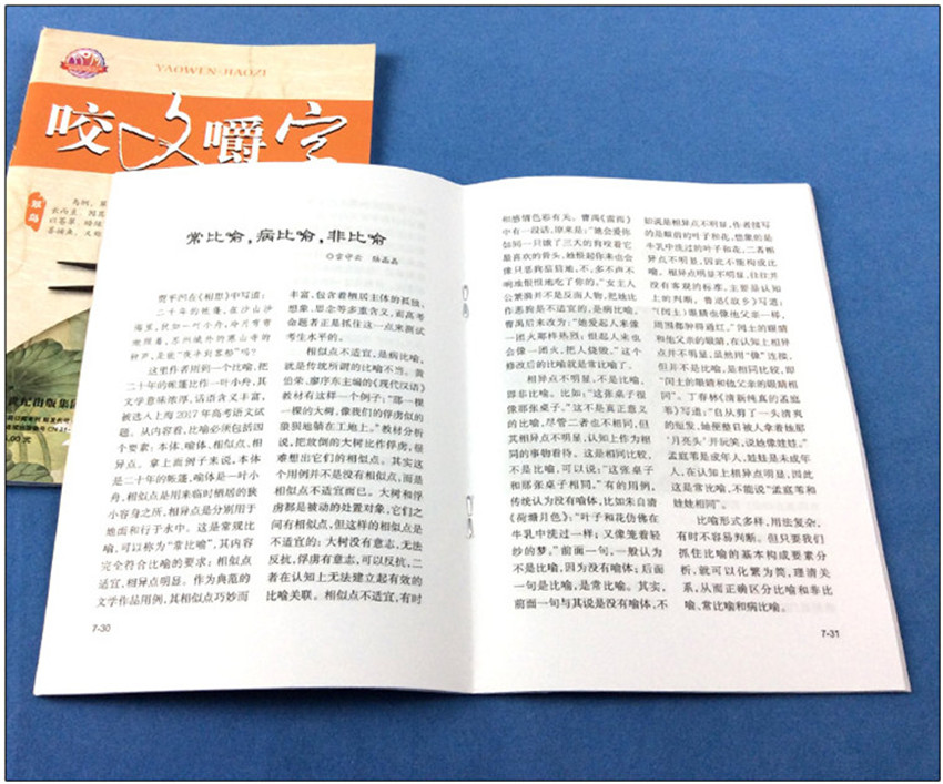 《咬文嚼字》創(chuàng)辦于1995年,月刊,單期56頁(yè),《咬文嚼字》雜志針對(duì)性強(qiáng),專(zhuān)門(mén)剖析報(bào)刊、圖書(shū)、廣告、影視中的各類(lèi)語(yǔ)文差錯(cuò),知識(shí)性強(qiáng),尤其有些知識(shí)不是課堂里、詞典里能等到的;文字生動(dòng)可讀。