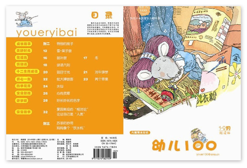 《幼兒100》,創(chuàng)刊于2008年,期望通過自身在傳播領域的資源優(yōu)勢,給我們帶來高品質(zhì)生活,紙張開本:16開,國內(nèi)刊號:CN:32-1784/C。雜志封面故事,每期介紹一位學前教育家,讓讀者零距離地感受其風采;人物,介紹從事學前教育的專家,老師,讓讀者了解同行的所思所想;流派,介紹國內(nèi)外學前教育的做法;管理,是學前教育從業(yè)人員對學前教育的種種探索和研究成果。