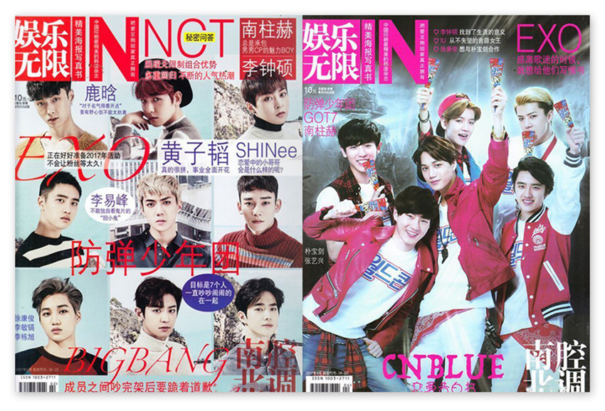 《娛樂無限》作為國內(nèi)娛樂大刊,她以其個性、獨到、實用的特色獨領(lǐng)風(fēng)騷,其年齡群的彈性跨度為10歲,適合眾多年齡群讀者,雜志主要以韓國明星為主,每期附送有獨立制作的3小時高清DVD光盤,2010,在贈送的DVD光盤里首創(chuàng)了韓文+音標(biāo)MV,方便了更多哈韓迷們學(xué)習(xí)韓文歌曲。