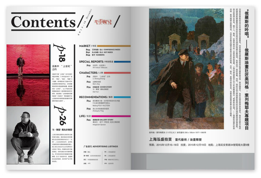 一本順應(yīng)藝術(shù)市場(chǎng)需求,從全新角度打造的藝術(shù)市場(chǎng)媒體,雜志擁有卓爾不群的品質(zhì)、優(yōu)雅的閱讀感受,和國(guó)內(nèi)強(qiáng)的藝術(shù)市場(chǎng)分析實(shí)力,通過(guò)各大拍賣(mài)公司、酒店、機(jī)場(chǎng)、書(shū)店等渠道,發(fā)行量迅速攀升,是國(guó)內(nèi)及時(shí)本為高端階層服務(wù)的藝術(shù)類(lèi)專(zhuān)業(yè)雜志,堅(jiān)持較高編輯標(biāo)準(zhǔn),出品人于天宏涉足當(dāng)代藝術(shù)十幾年,先后任國(guó)內(nèi)數(shù)家知名傳媒公司高管,積累了豐富的傳媒經(jīng)驗(yàn)和深厚的藝術(shù)人脈。