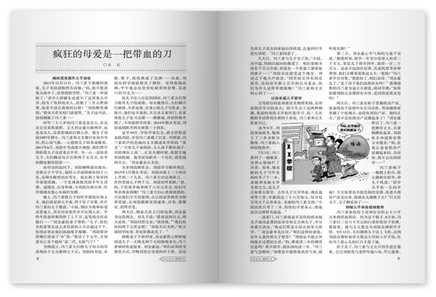 瘋狂的母愛是一把帶血的刀,編織謊言提升兒子自信,2013年12月11日,馮蘭素下班剛回到家,兒子劉晨就黯然告訴她:“媽,我不想讀重點(diǎn)高中了,你幫我轉(zhuǎn)學(xué)吧。”馮蘭素一聽就惱了:“多少人擠破頭也進(jìn)不了這所重點(diǎn)中學(xué),媽為了你四處求人,還繳了三萬元贊助費(fèi),你要不讀讓我情何以堪?”劉晨眼里涌淚:“我每天看見校門就想哭?!?