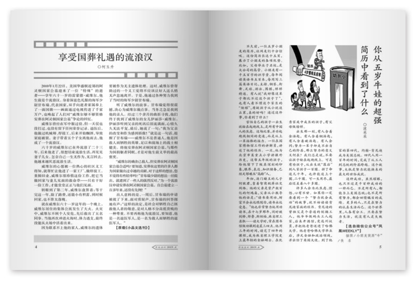《雜文選刊》,創(chuàng)刊于1988年,期望通過自身在傳播領(lǐng)域的資源優(yōu)勢,給我們帶來高品質(zhì)生活,紙張開本:16開,國內(nèi)刊號(hào):CN:22-1281/I。以“針砭時(shí)弊、批評(píng)世俗、反思?xì)v史、解讀人生”的定位,“公正深刻、辛辣幽默、雅俗共賞、生動(dòng)鮮活”的風(fēng)格吸引著不同年齡、不同職業(yè)、不同愛好的讀者,被廣大讀者譽(yù)為“人生寶典”、“真話講壇”、“風(fēng)雨中的玫瑰”。