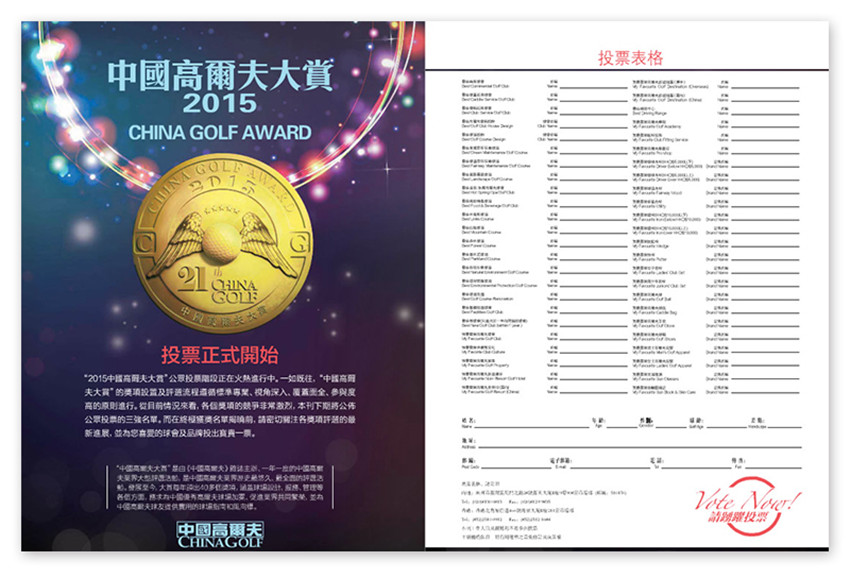 為了配合高爾夫運(yùn)動(dòng)之蓬勃發(fā)展,中國高爾夫由過往的雙月刊改為月刊,更迅速提供豐富資訊予讀者,更受讀者推崇,成為中國具性的高爾夫雜志。中國高爾夫秉承一如既往的開拓精神,致力求新,以臻,通過刊物出版,活動(dòng)組織及贊助,多方位努力,與各界攜手共創(chuàng)中國。